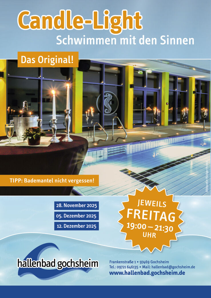 Die Gemeinde Gochsheim und das Hallenbadteam wünschen Ihnen viele erholsame und entspannte Stunden.